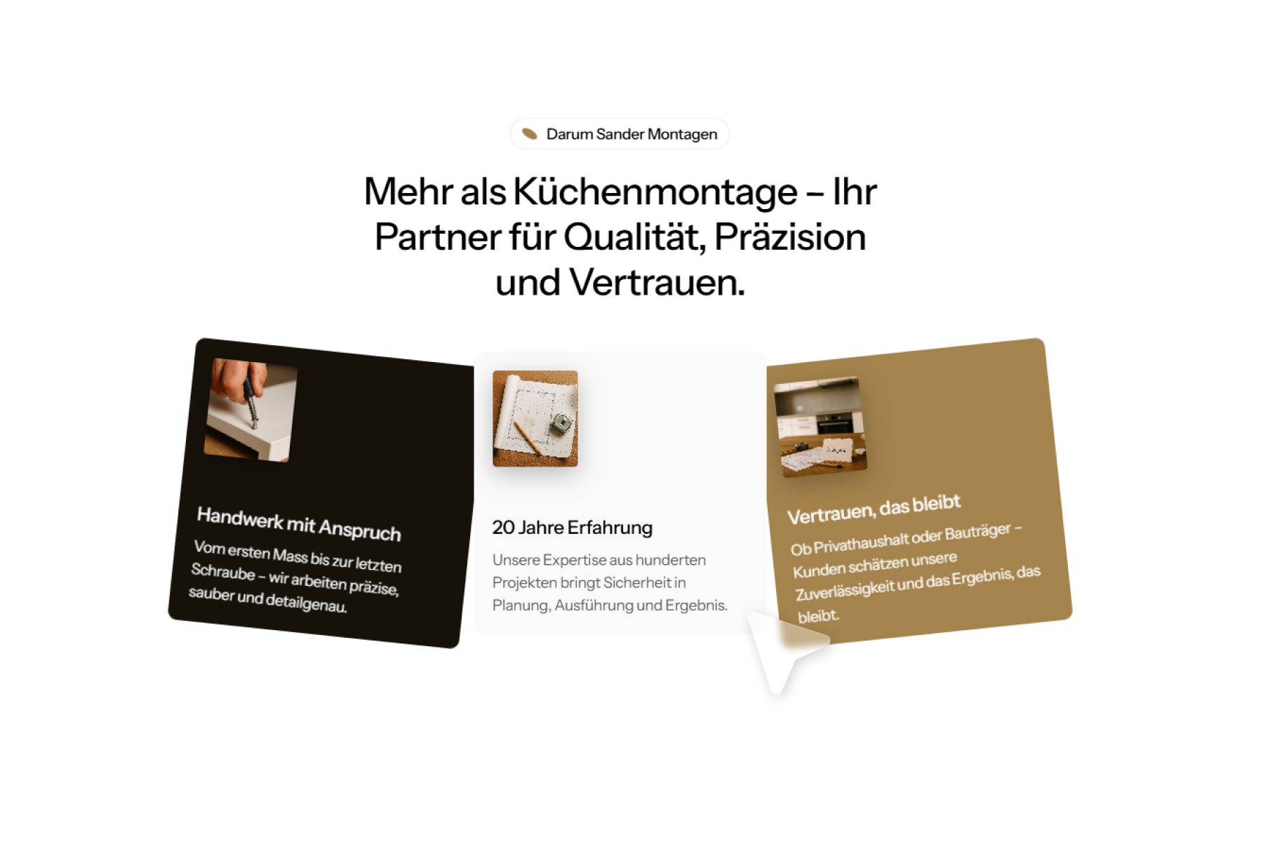 Unser Küchenbau jetzt auch digital erlebbar. comote hat für meinen Küchenbaubetrieb die erste Website erstellt und mein Unternehmen damit professionell online sichtbar gemacht. Das Ergebnis ist modern, klar strukturiert und passt perfekt zu meiner Arbeit. Die Zusammenarbeit war zuverlässig und unkompliziert.